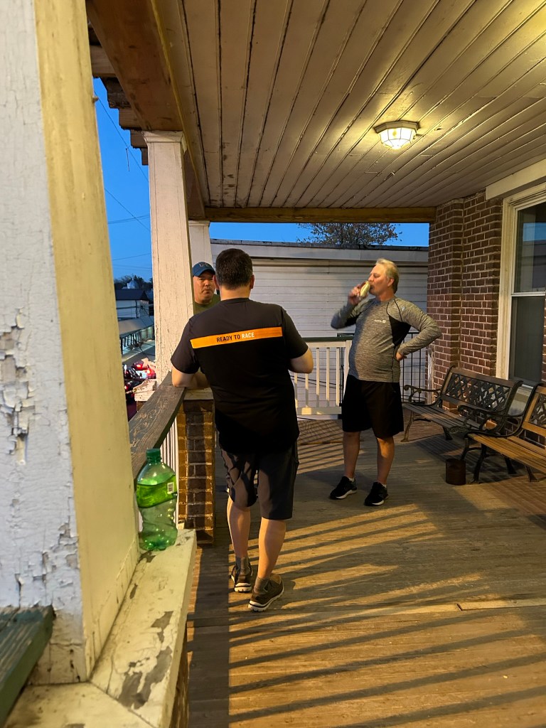 After a 225-mile day, we were happy to reach the Star Hotel. We ate an okay supper in the hotel’s dining room and now Brian is prohibited from eating pot roast on our motorcycle trips. We ended the day with bourbon on the second-floor porch outside our vintage rooms. Note: alcohol travels nicely on a dirt bike in a plastic Dasani bottle – mine survived three dirt naps!