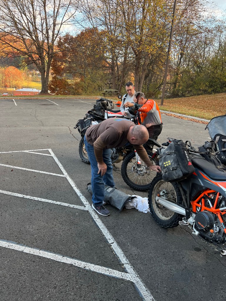 Still mostly full from dinner the previous night, we munched protein bars while packing the bikes before rolling on 8 (see what I did there, 4 bikes each with 2 wheels… well, I thought it was amusing) on section 1 of the MABDR.