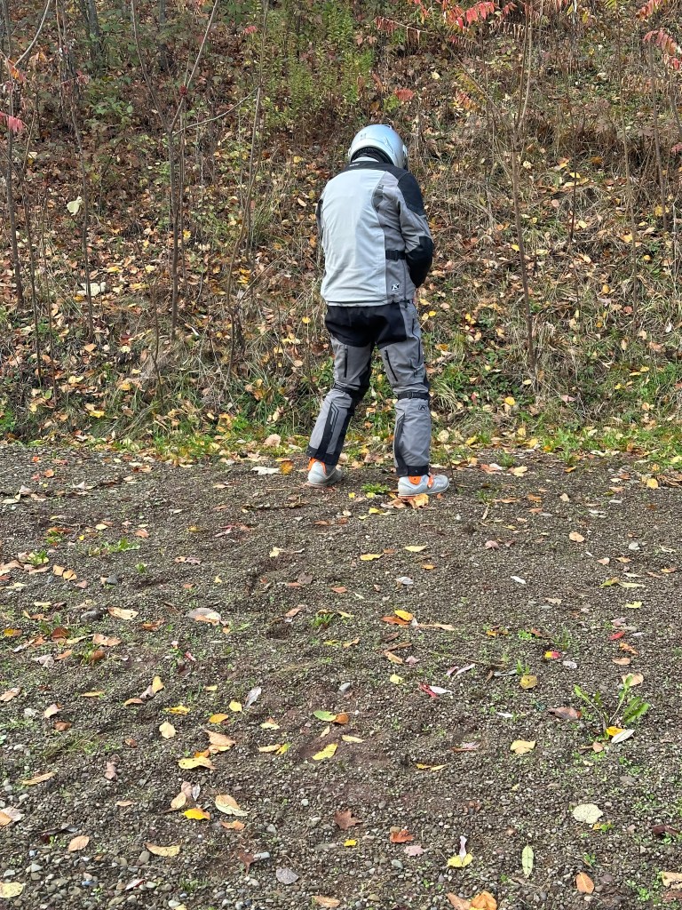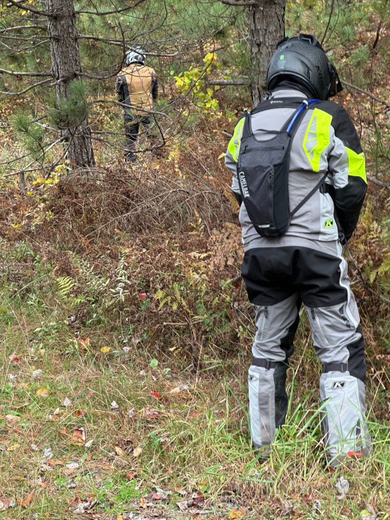 Guy rolled in with brand-new Gaerne SG22 Gore-Tex Enduro boots — bone dry by the end of Day 2, while the rest of us squelched through dinner in wet socks. Naturally, Brian and I ordered a pair each that night, ready to join the dry-foot revolution. But Day 3 was the plot twist: Guy’s boots leaked in the heavy water sections. Back home, bathtub tests confirmed it — leak city. All three pairs were returned. Lesson: Waterproof socks still reign supreme, and marketing copy is no match for a muddy forest road in October.
